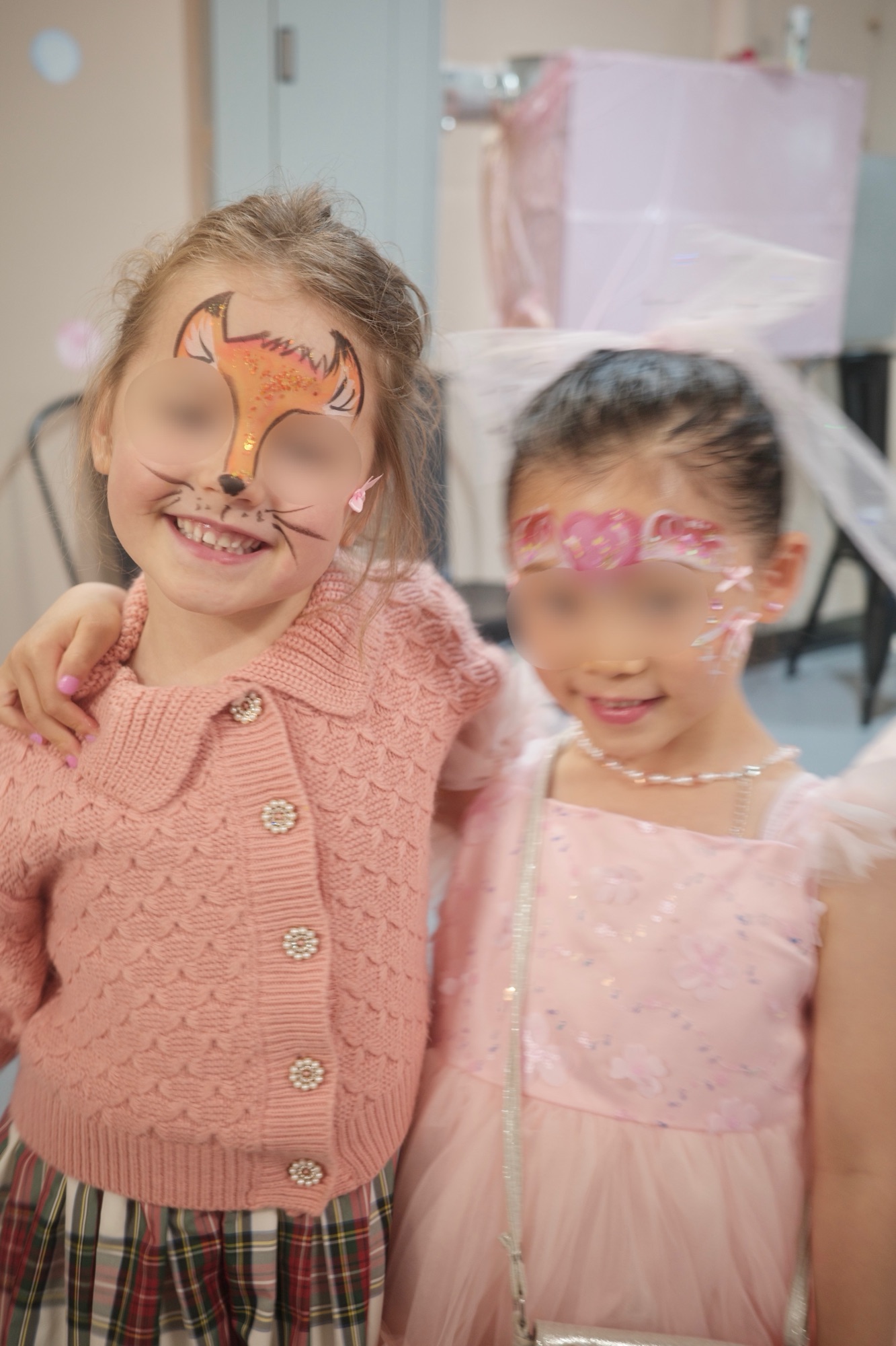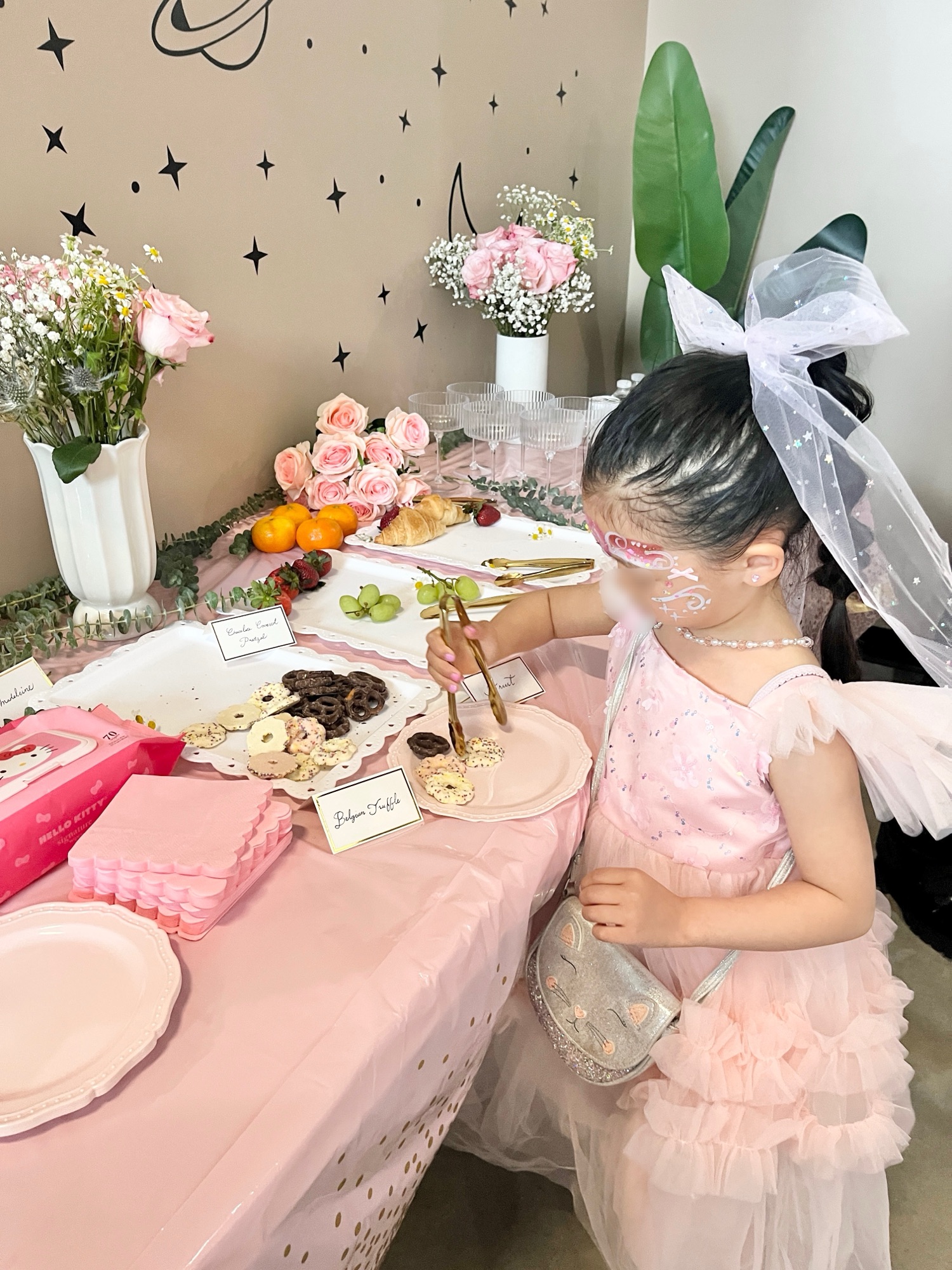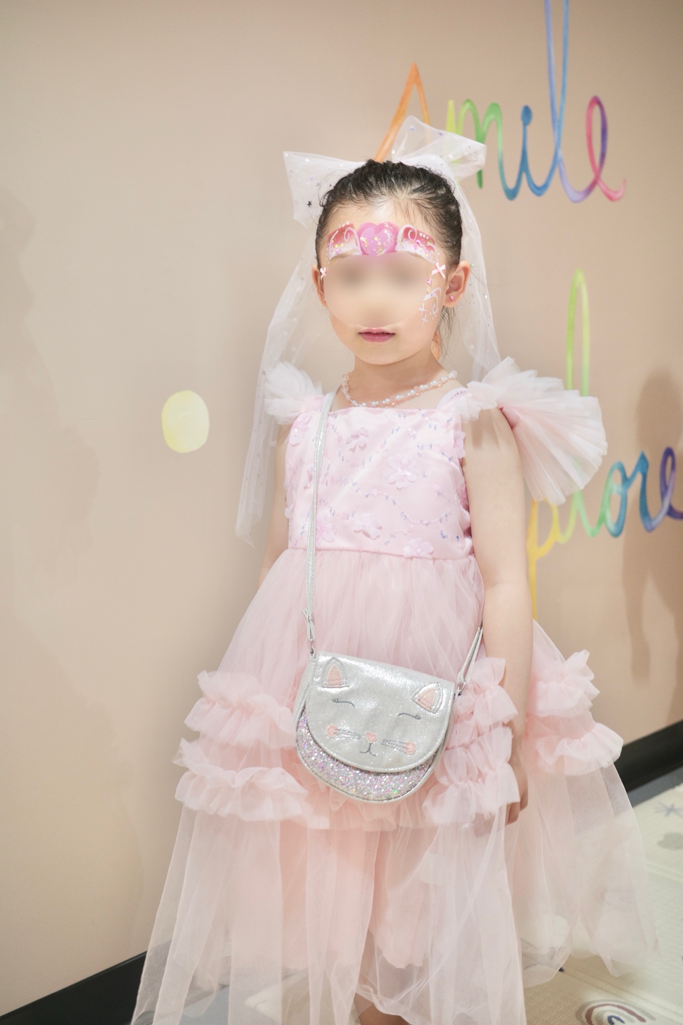 少しだけメイクもして、キラキラやリボンのシールを顔に貼ってご機嫌、、、✨