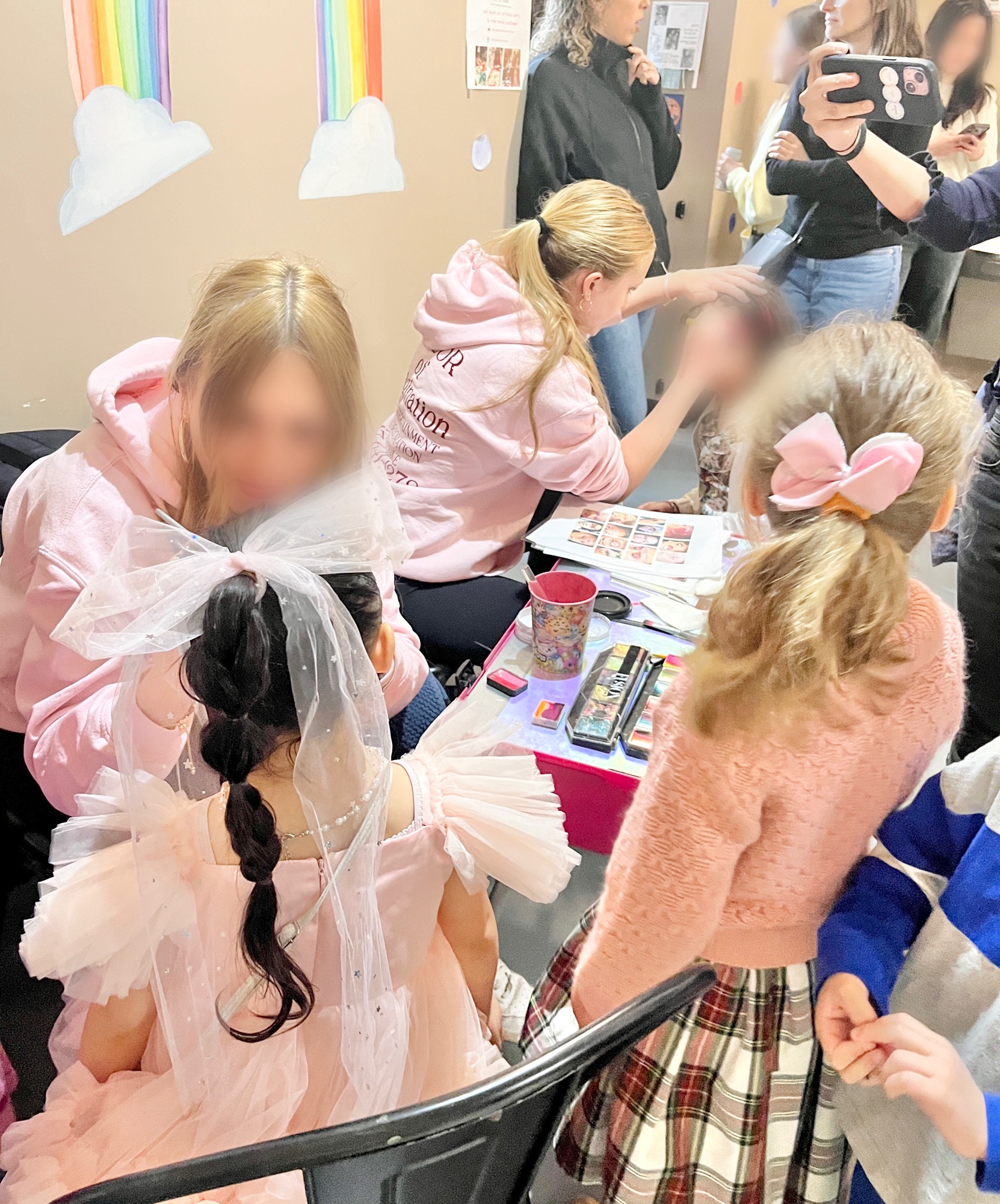 爆イケお姉さん達が2人がかりで子供達のフェイスペイントをやっていく。