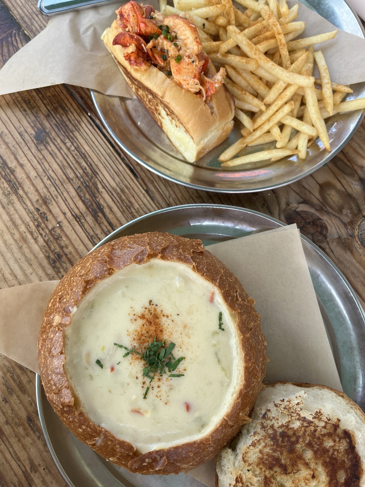 クラムチャウダーを注文したら、ロブスターやら他のシーフードもゴロゴロ入ってて贅沢だった…!