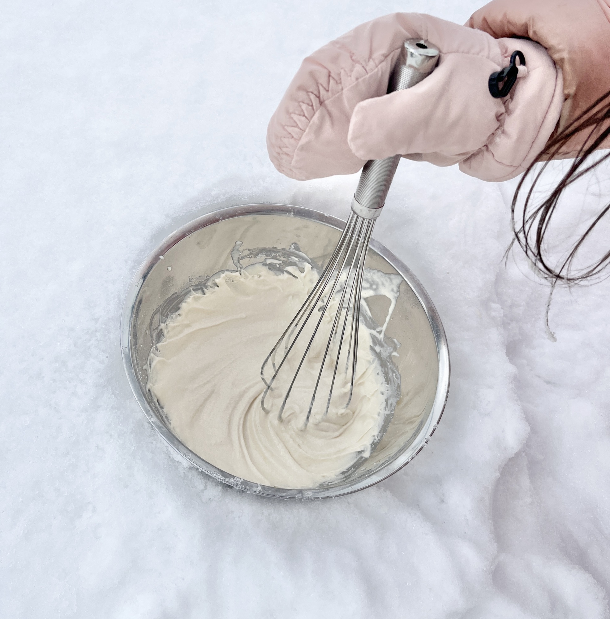 雪の上に塩を撒き、その上で材料を混ぜるだけ!