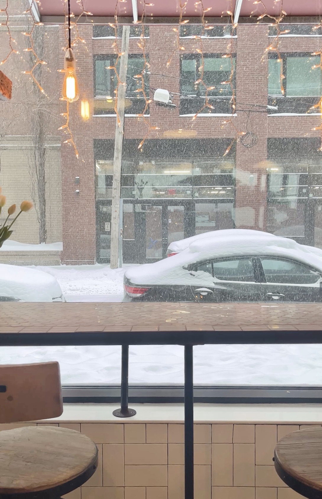 カフェには雪遊び道具を持った子供達、スキーゴーグルやスキーウェアを着る人も。確かに必要なくらい大雪降ってた☃️