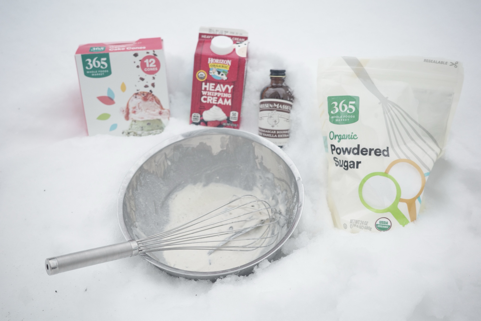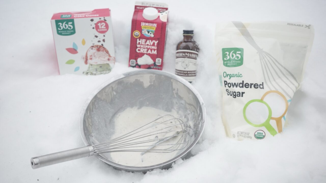 雪の上に塩を撒き、その上で材料を混ぜるだけ!